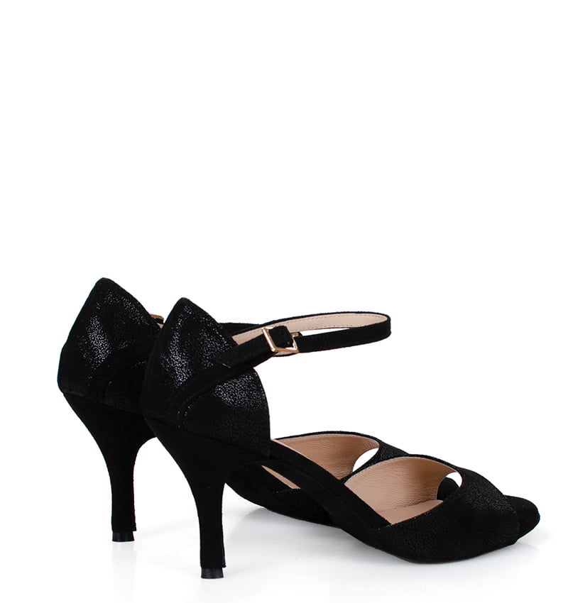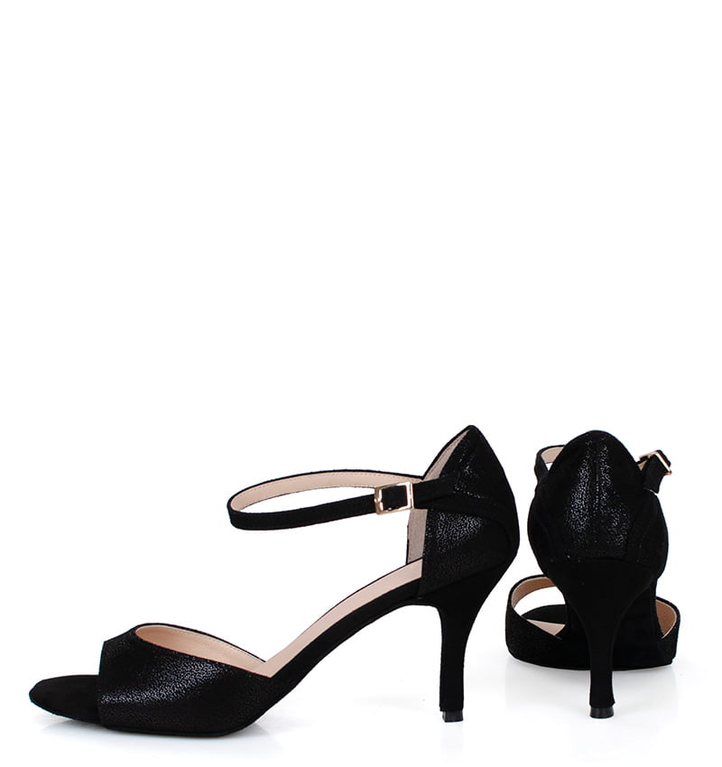 RAMONA – Czarne sandałki do tańca na skórzanej podeszwie. Buty sprawdzą się doskonale do tanga, standardu czy latino. Podeszwa wykonana ze skóry welurowej, dzięki czemu zapewnia odpowiedni poślizg. Ramona w wersji widocznej na zdjęciu, posiada pasek zapinany na sprzączkę. Obcas o wysokości 7,5 cm (wysokość obcasa jest mierzona dla rozmiaru 37).