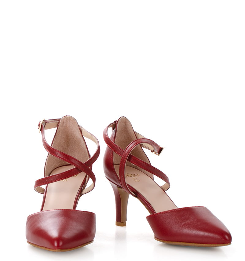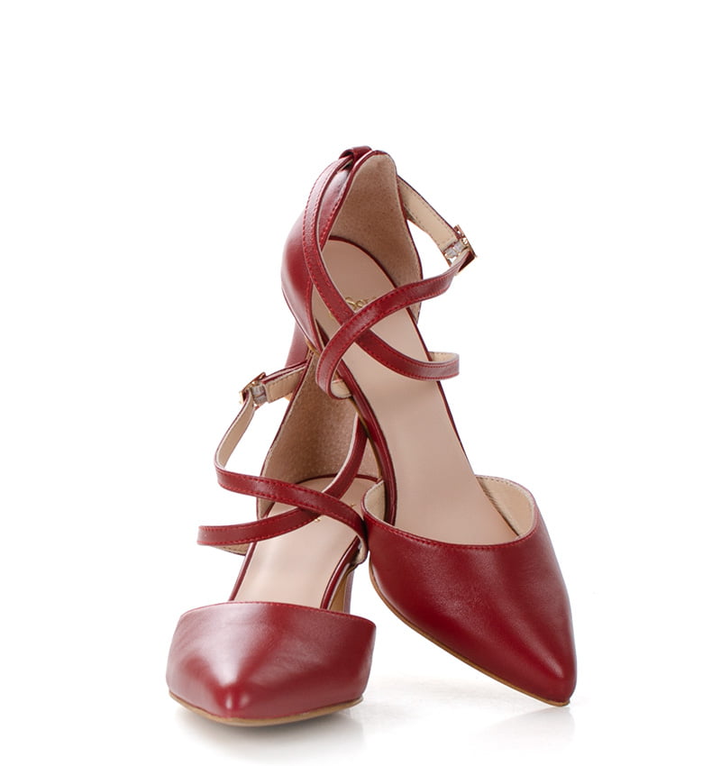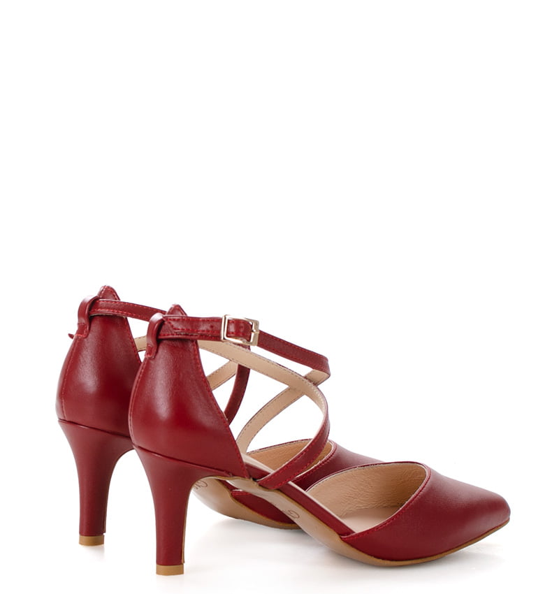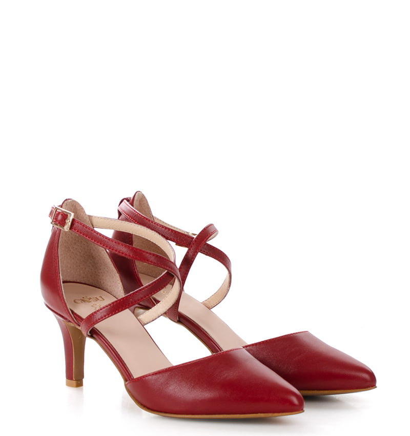 REBEKA – czerwone szpilki z zapinanymi na krzyż paseczkami, które dobrze trzymają stopę. Nosek butów jest szpiczasty. Cholewka i wkładka wykonane są z naturalnej skóry licowej, co zapewnia wysoką jakość i trwałość materiału. Wysokość obcasa wynosi 6,5 cm, co zapewnia stabilność i wygodę butów, sprawiając, że są idealne do codziennego użytku. Tęgość butów to F 1/2. Buty wygodne, stabilne i eleganckie, nadające się zarówno na co dzień, jak i na bardziej formalne okazje.