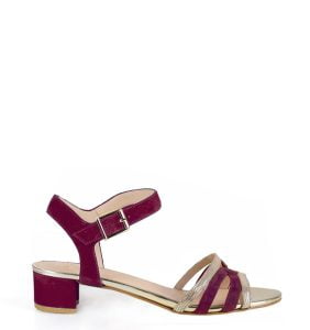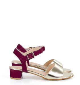 ZAJA – bordowo złote sandałki na niskim obcasie