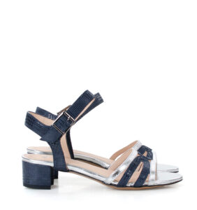 ZAJA – niebiesko srebrne sandałki na niskim obcasie