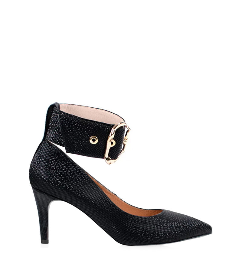 ZERITA – czarne czółenka na słupku z paskiem nad kostką