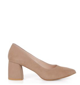 CLARA – Beżowe czółenka na grubym słupku