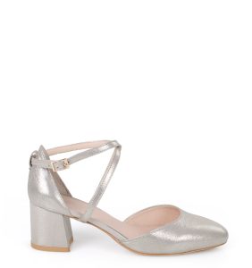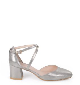 MONICA – Srebrne czółenka z paskiem na krzyż niski słupek