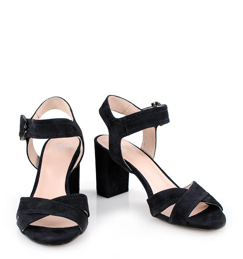 VIVIAN- Czarne sandały na słupku zamszowe