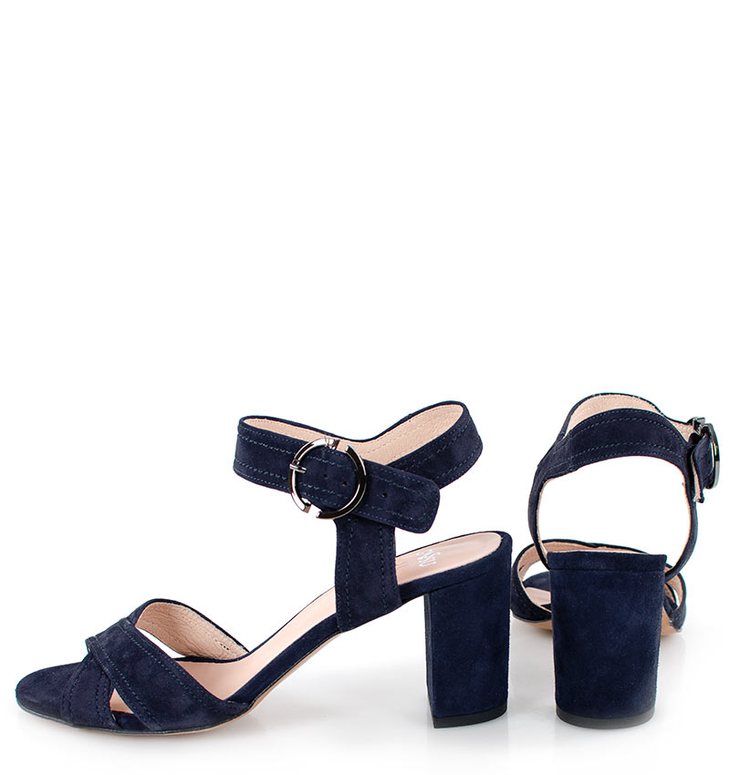 VIVIAN- Granatowe sandały na słupku zamszowe