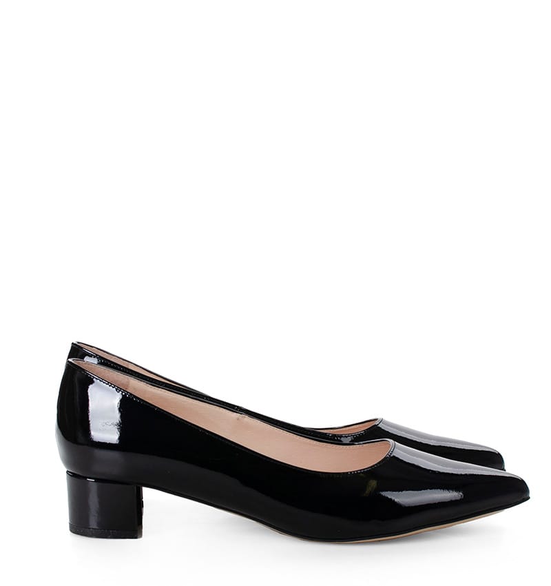 WERONICA – czarne czółenka na niskim obcasie lakierowane