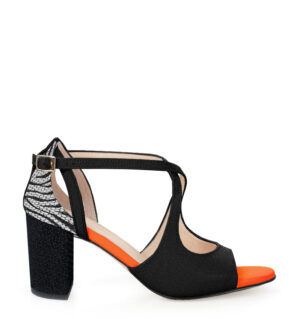 ABRIL – czarne z pomarańczowym akcentem sandałki do tańca na słupku