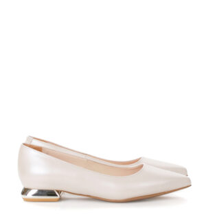 KORA – beżowe baleriny perłowa skóra na płaskim obcasie