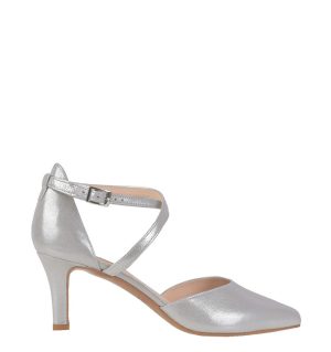 JOAN – Złote szpilki satynowane średni obcas