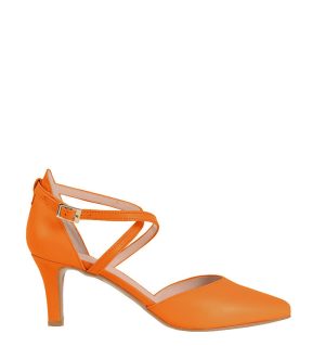 REBEKA – Czółenka pomarańczowe na niskiej szpilce